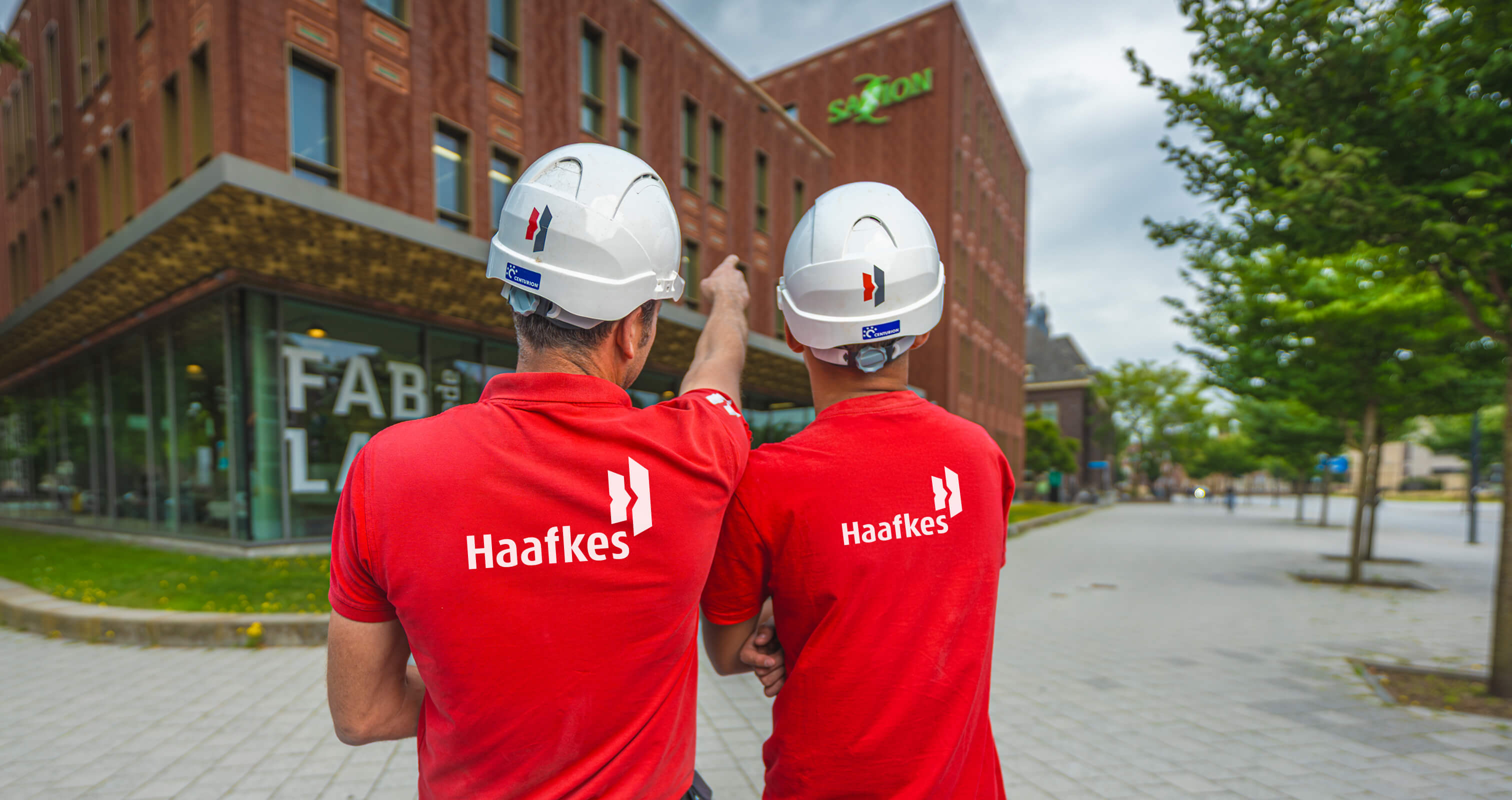 De omstandigheden waarbinnen het werk is gerealiseerd - in de binnenstad, met dus de bekende logistieke verschijnselen, zoals beperkte ruimte, lastige aanvoerroutes en de directe aanwezigheid van overige onderwijsgebouwen - was complex. De nieuwe gebouwen maken deel uit van een grootschalige uitbreiding van de stadscampus. Dat betekent dat we moesten bouwen tussen andere onderwijsgebouwen in. Veiligheidsvoorzieningen vroegen meer aandacht dan normaal en logistiek en veiligheid telden daarom zwaar mee tijdens de aanbestedingsprocedure. Vooral op deze punten kwam de combinatie Haafkes/Plegt-Vos als beste uit de bus.